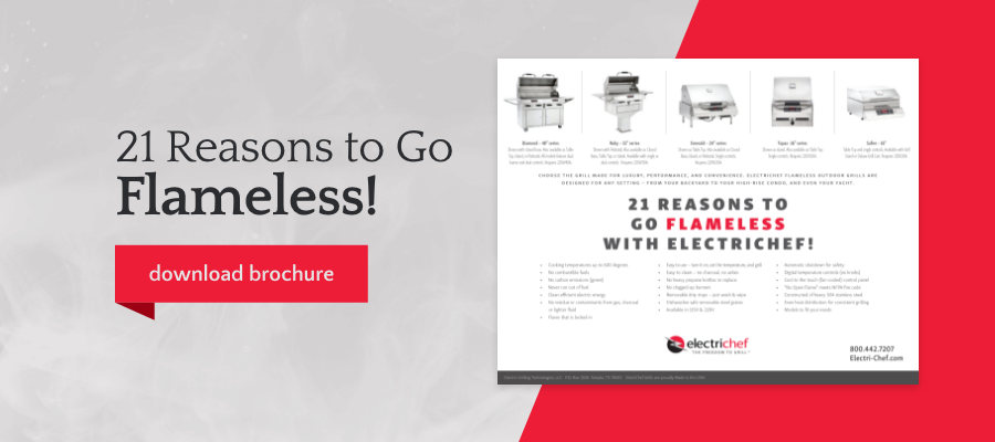 These days, the options for purchasing a grill may seem overwhelming. There’s the old-fashioned charcoal grill, the popular propane grill, and even natural gas and pellet grills are an option these days. But all these fuel types have one thing in common: they’re combustible and have an open flame.